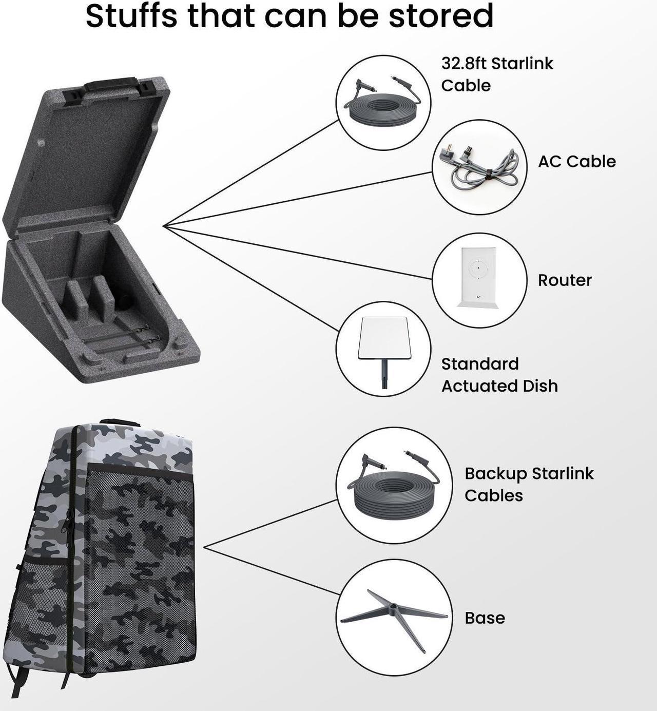 lengthy 32.8FT Starlink cable. Exterior backpack space accommodates Starlink