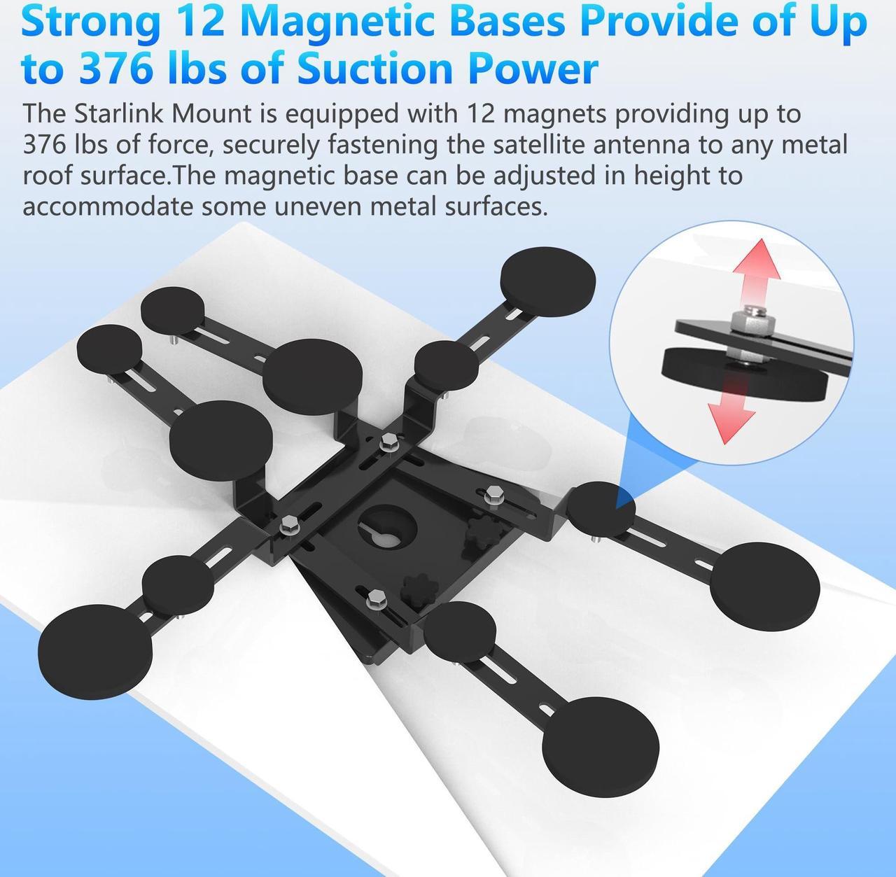 Power]: The Starlink Mount is equipped with 8 magnets providing up to 376lbs