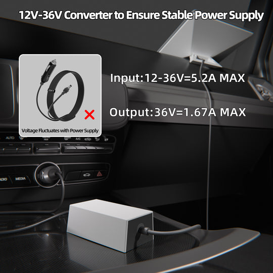 lighter socket. The integrated DC-to-DC converter ensures a stable 36V/1.67A